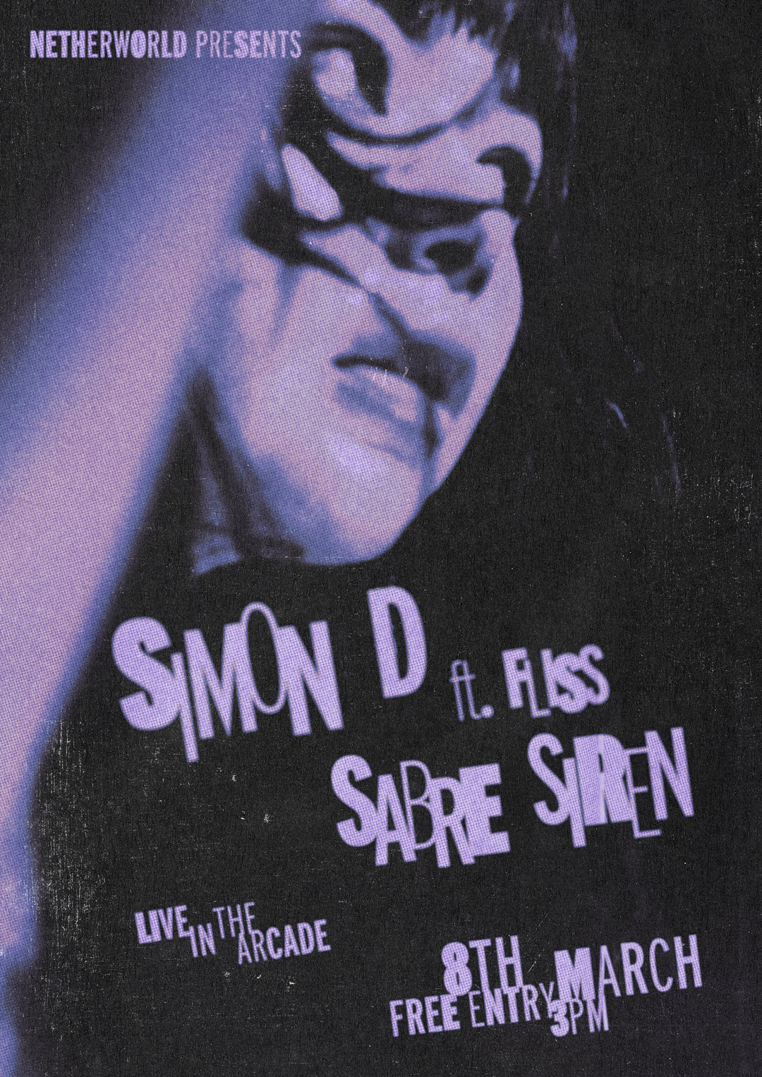 Join us on Sunday the 8th of March for an afternoon of electro bliss, with Sabre Siren & Simon D ft. Fliss. – live in the arcade!